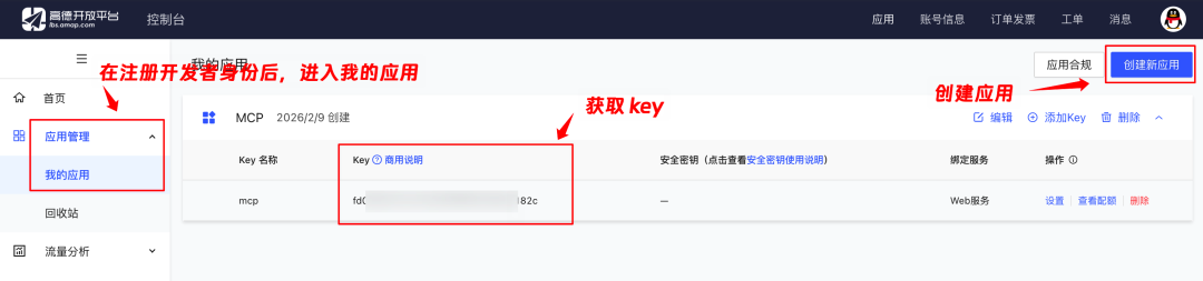 2)获取地图 MCP Key: