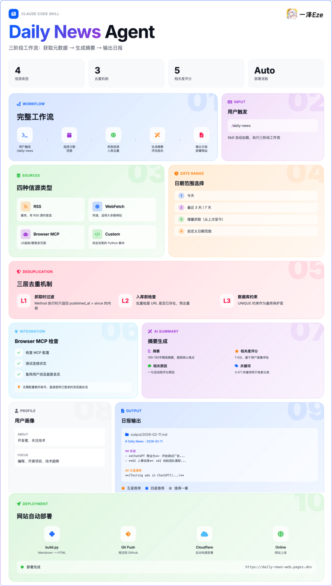 日报生成是一个典型的 Agent 任务:多信源、多工具、流水线处理。