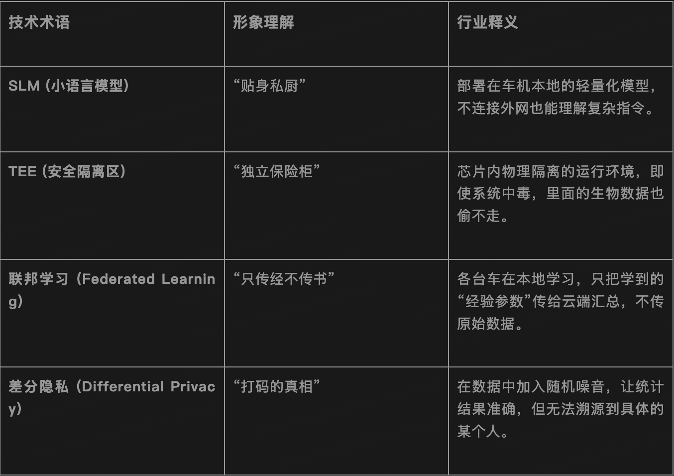 - 语义脱敏:所有的语音交互、视线轨迹、甚至车内乘客的对话,都在本地完成特征提取。上传到云端的不再是原始音频或图像,而是经过矢量化的无感指令。