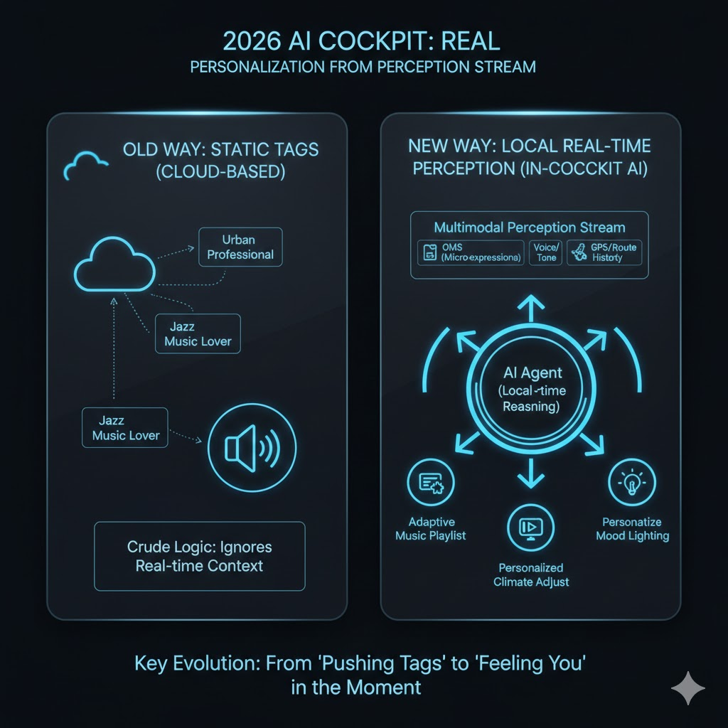 真正的个性化不应产生于云端数据库的匹配,而应产生于座舱内多模态感知流(Perception Stream)的本地实时推理。