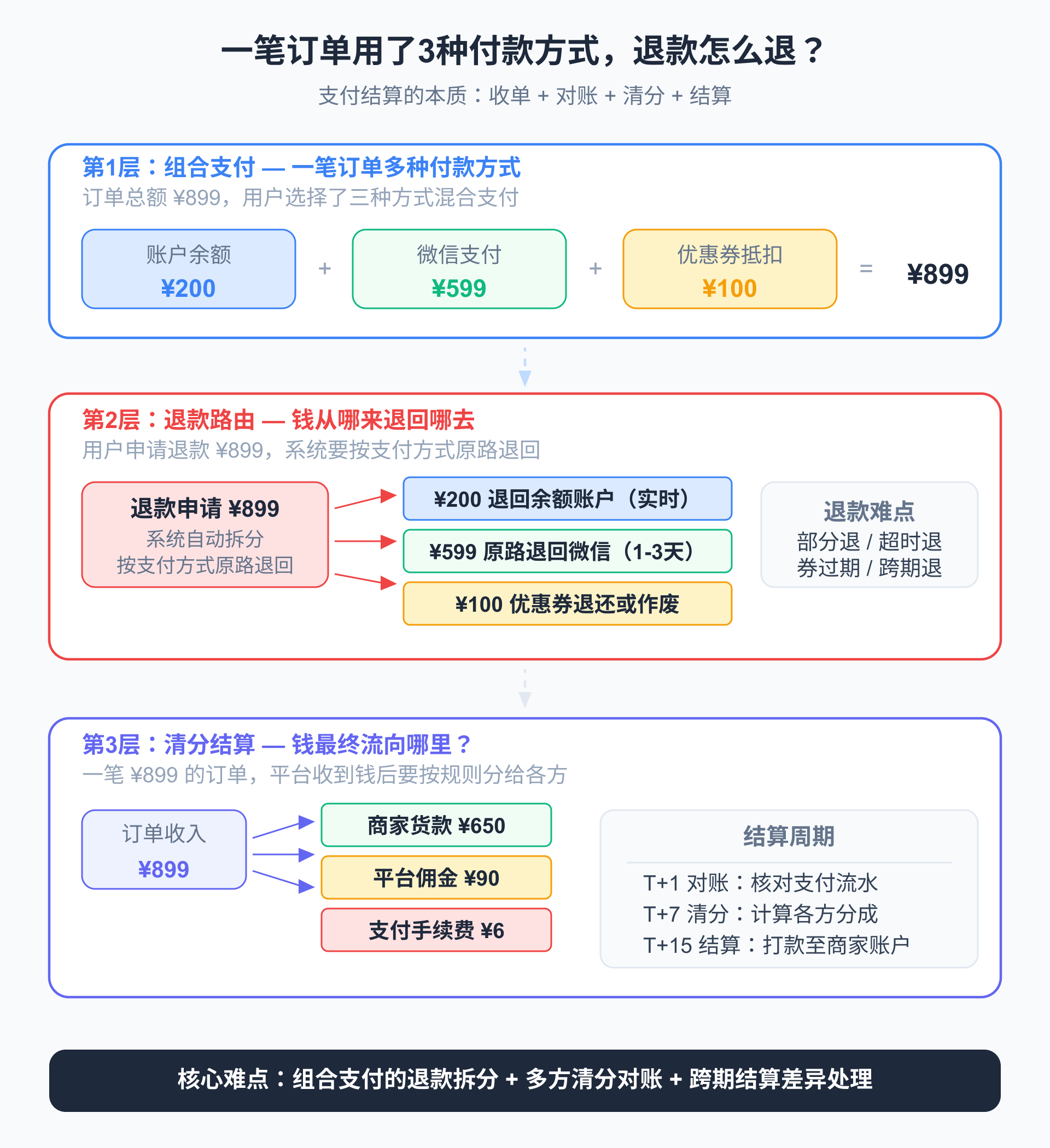 核心问题: 一笔订单用了余额+微信+优惠券,退款怎么退?