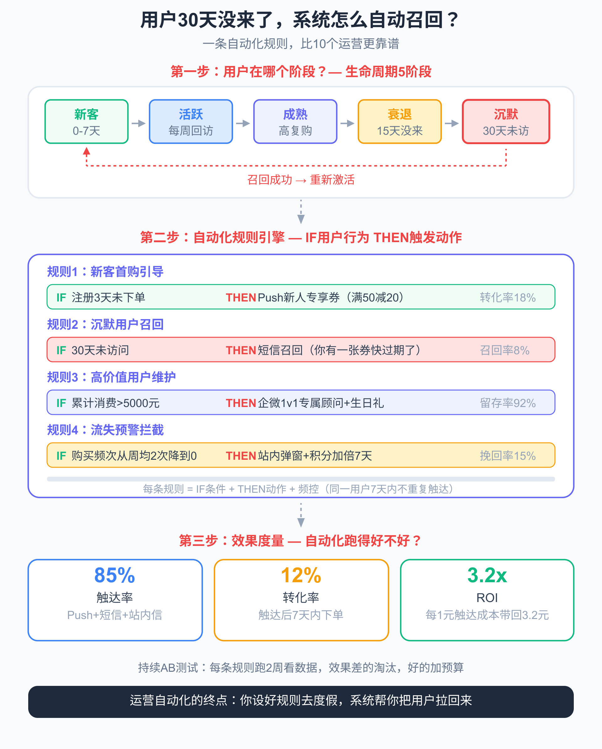 核心问题: 用户30天没来了,系统怎么自动触发召回?