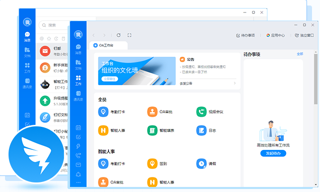 审批功能支持自定义流程(如请假、报销、采购),适配不同企业的组织架构和审批规则。