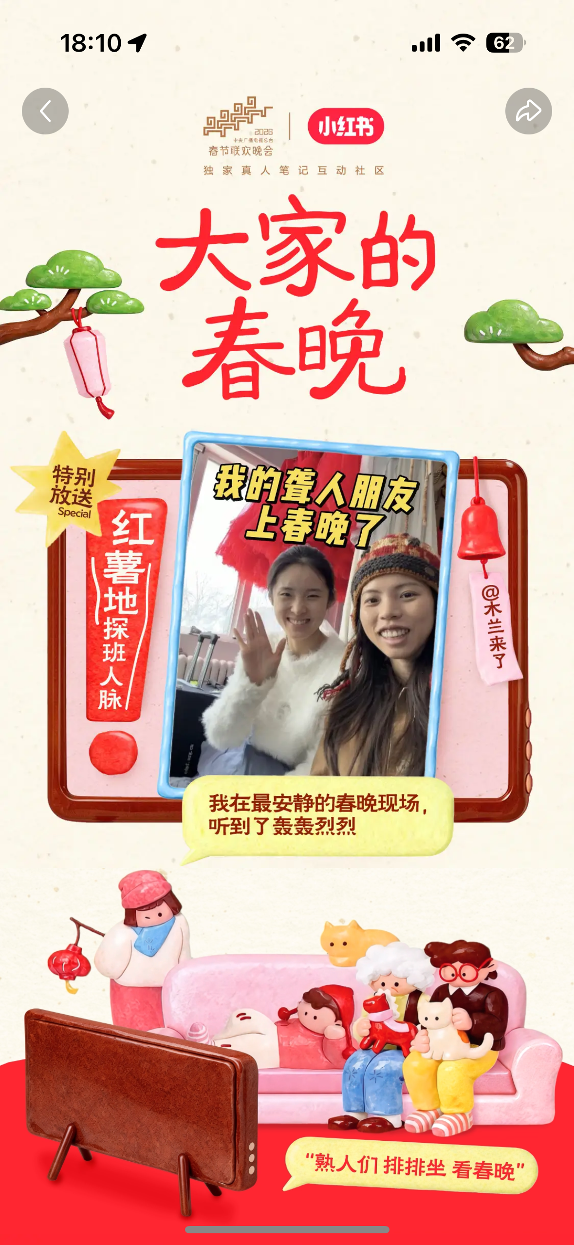 B 站作为春晚独家弹幕视频平台,主打“和懂你的人一起看春晚”。