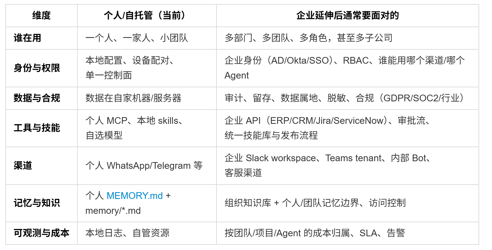 个人助手和企业产品之间,差的不是「功能堆砌」,而是边界和分层。想基于 OpenClaw 这类架构做企业延伸,可以记住四件事: