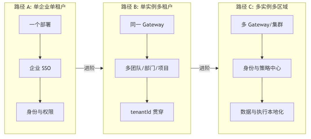 建议:先想清楚目标客户是 A 还是 B/C,再反推身份、租户、记忆、工具要做到哪一层,避免一次做满「全球多租户」导致复杂度爆炸。