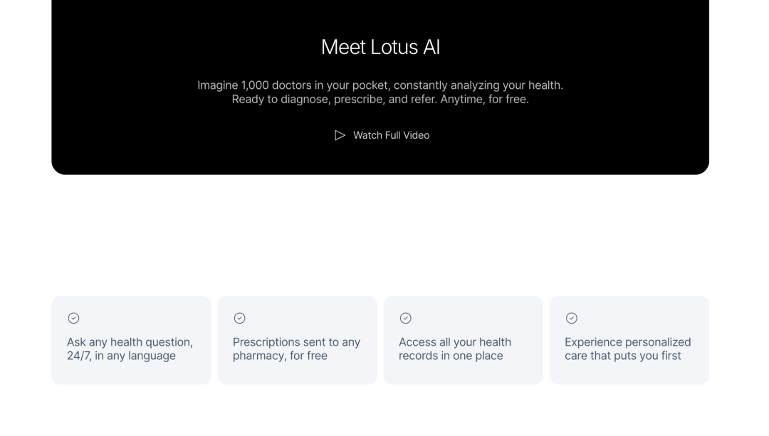 了解了这些背景后,我们再来看Lotus Health AI在做什么就更有意义了。他们的方法可以用一句话概括:建立一个真正以患者为中心、AI驱动但有真实医生把关的初级医疗服务平台,并且完全免费提供给患者。听起来有点理想主义,甚至让人怀疑商业模式是否可行,但当我深入了解后,发现这个方案在技术和商业逻辑上都有其合理性。