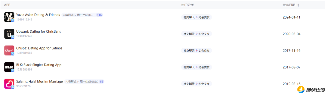 比较有意思的一点是,Upward的开发者Affinity Apps,LLC(以下简称Affinity)是Match Group(旗下拥有Tinder, Hinge等)的子公司。此前曾开发过针对非裔美国人士的应用BLK,也是目前全球最大的黑人单身社交应用、针对拉丁裔的Chispa(总收入超1亿美金)、针对穆斯林群体的Salams(原名Minder),还在2024年推出了专注于亚裔人群的Yuzu。
