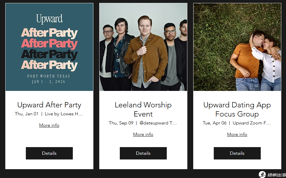 此外,Upward还会在线上、线下组织一些活动来拓展用户圈层。比如线下派对帮助人们快速建立情感联结,以及在TikTok、Instagram直播乐队演出,并组织礼拜活动等等。