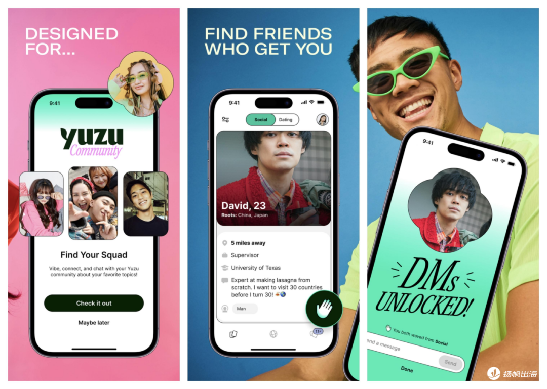 基于Upward类似的产品逻辑和成功经验,2024年Affinity在北美又推出了一款面向亚洲人士的社交应用Yuzu。