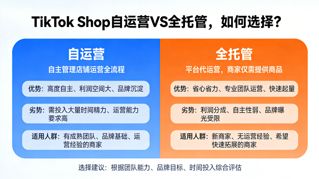 “自运营还是全托管?”当TikTok Shop入驻的两种模式摆在眼前,许多跨境卖家陷入选择困境。