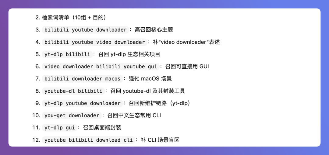 然后它会自己拆成若干个检索词去进行检索,根据检索来的数据评估是否需要优化检索词,如果需要就再进行多轮的检索,如果不需要就进入下一步进行项目筛选。