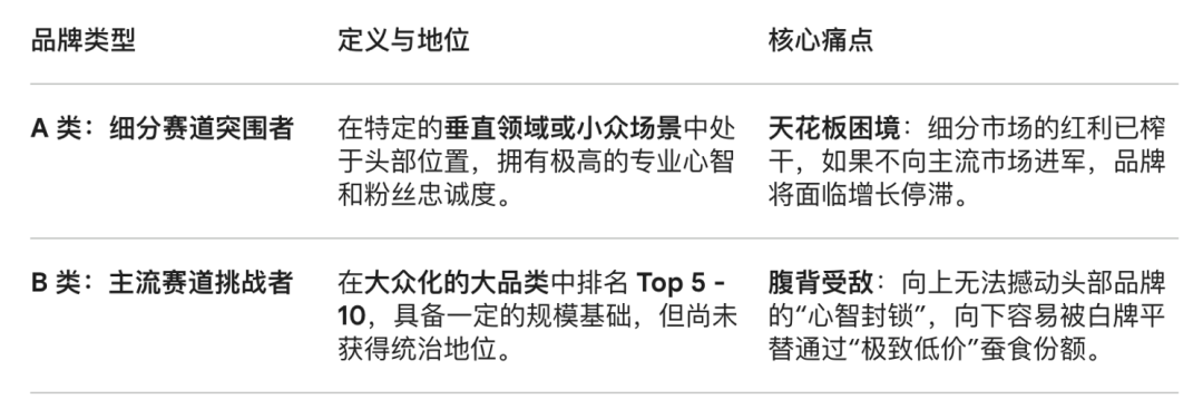 B类:在主流市场赛道占据5-10位置,面临「前有头部后有白牌平替」的激烈竞争