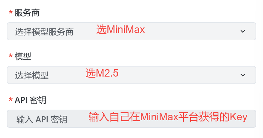 我打开某AI编程工具,添加了M2.5自定义模型就要开搞,这里Trae中国版已经内置了M2.5模型,其他没有内置的产品基本都可以在添加自定义模型的入口通过选择服务商-选择模型-输入Key的方式完成添加。