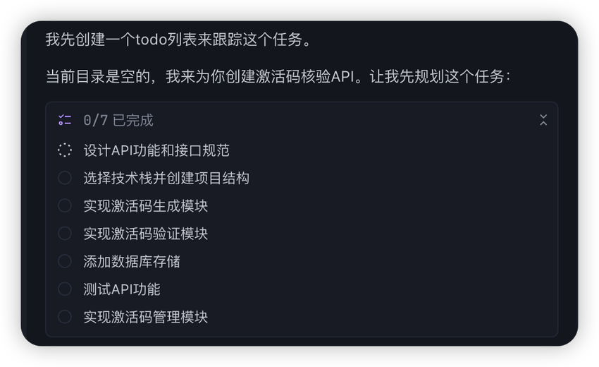 这次我没去泡咖啡。我想亲眼看看它怎么处理后端逻辑。首先是创建了一个todo列表跟踪任务