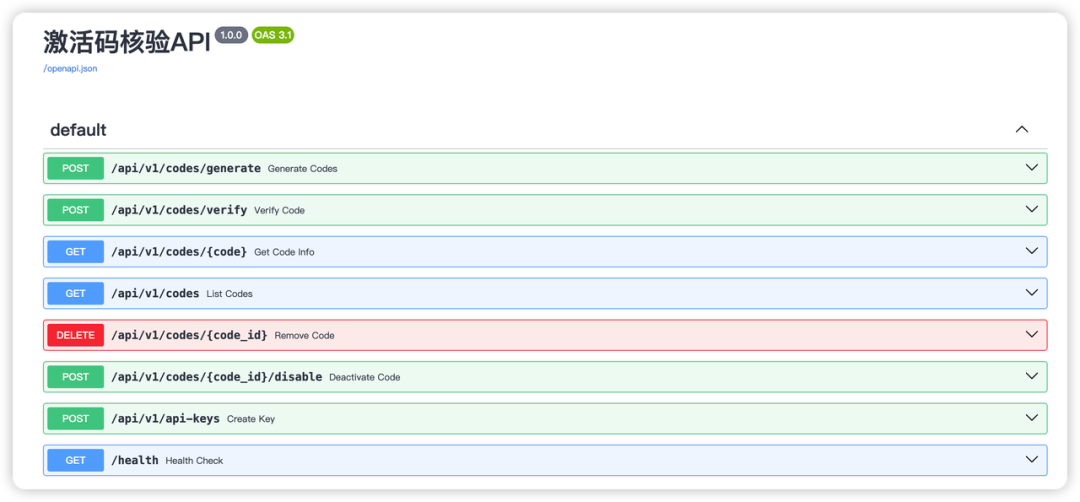 我测了一圈:批量生成 10 个周期卡,验证激活,设备绑定,过期检查,全部符合预期。在网页可以查看详细的API文档和使用方式。