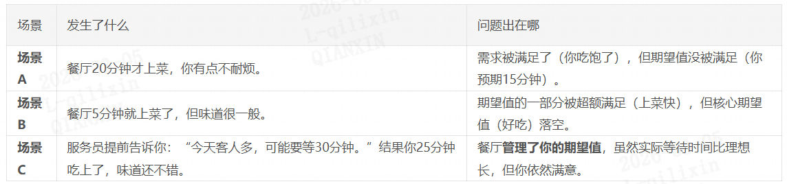这个类比揭示了一个真相:最终决定你满意度的,不只是“吃没吃饱”(需求),更是“和你心里想的差多少”(期望值)。