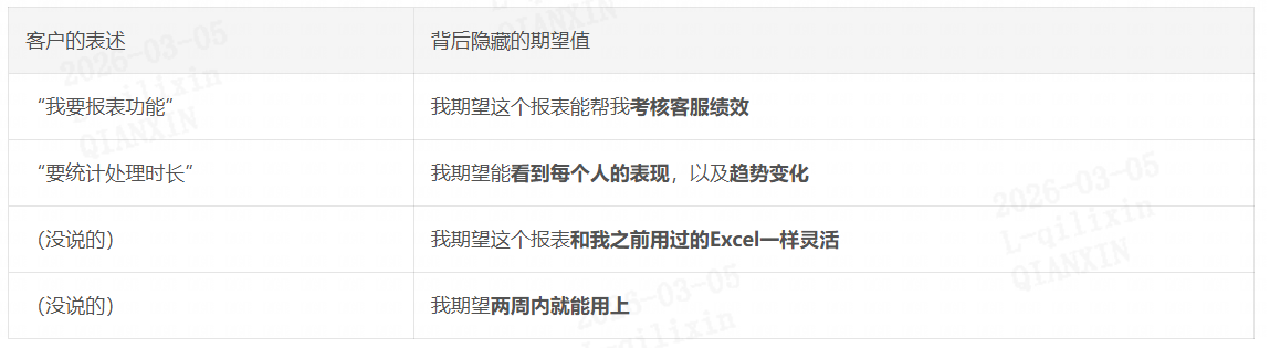 问题出在哪?你只接收了“需求”(要报表、要统计时长),但没有挖掘和理解客户的“期望值”: