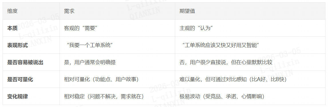 需求是“想要什么”,是清单;期望值是“觉得应该得到什么”,是尺子。