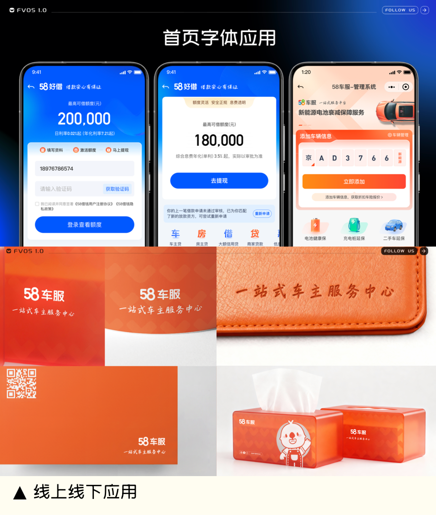 场景穿透案例:58车服品牌延展,FVOS支撑全场景物料体系化输出,品牌识别度显著增强。