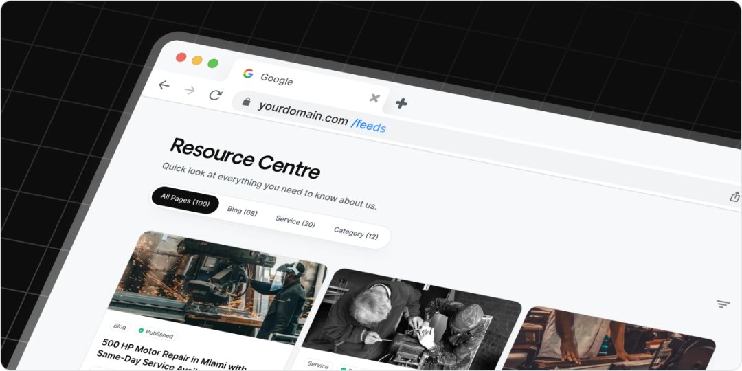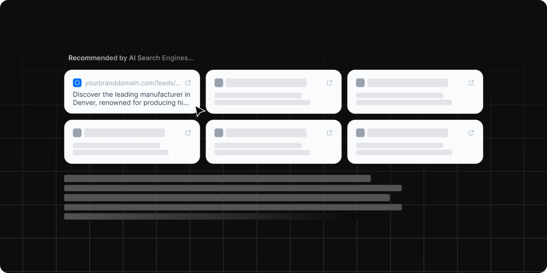 你的AI Feed存在于你的域名下(比如yourdomain.com/feeds),与你现有的CMS无缝集成。但与你的主站不同,这个feed遵循所有AEO(答案引擎优化)最佳实践。它使用针对AI模型摄取优化的结构化数据,当AI模型改变排名因素时进行实时更新,并自动刷新内容以保持与AI搜索算法的一致性。