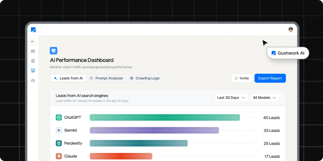 让我印象最深的是Gushwork对结果的执着关注。AI Feeds创建的每个页面都配备了追踪互动和捕获潜在客户的工具。当潜在客户访问你的内容(无论是来自Google还是ChatGPT)并采取行动时,这些潜在客户会自动流入你的电子邮件和Gushwork的潜在客户仪表板。