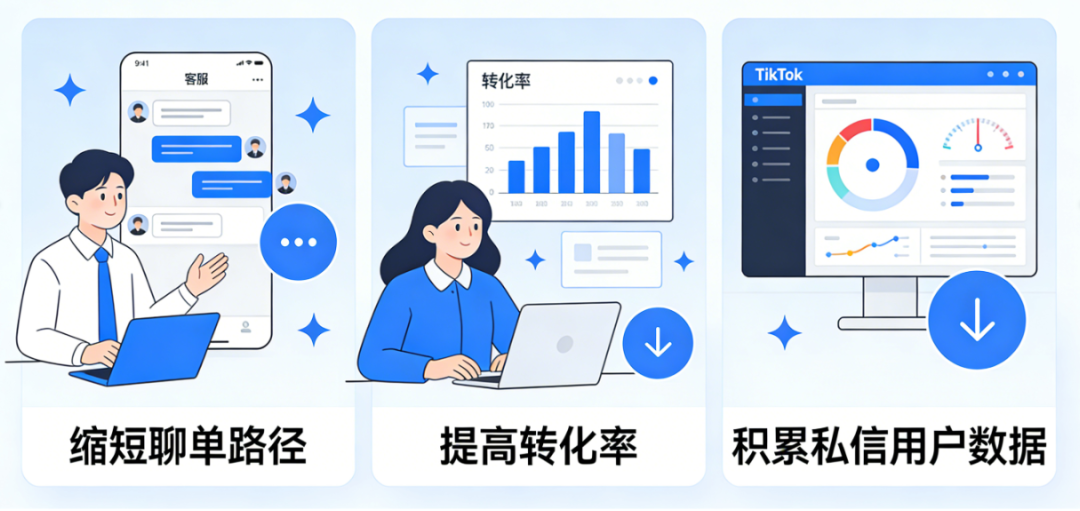 - 跨境电商/独立站:引导用户私信咨询产品细节、获取运费信息、领取优惠码,直接促成购买。