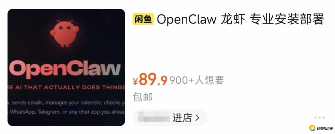 89.9元的“OpenClaw龙虾专业安装部署”900+人想要。图源:淘宝