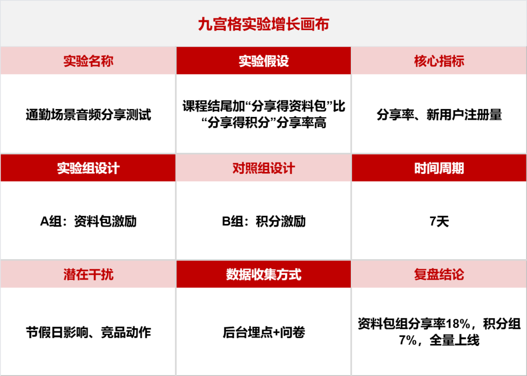 - 下结论:验证成功就放大,失败就复盘迭代