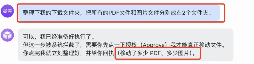我电脑的“下载”文件夹向来是个重灾区。所以,第一项任务,我直接让 OpenClaw 帮我整理这个文件夹,要求是:把所有的 PDF 和图片文件,分别归类到两个单独的文件夹里。