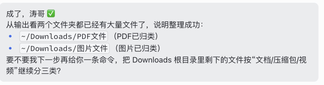 我打开文件夹一看,所有的 PDF 和图片已经被整整齐齐地归到文件夹了。第一关,完美通过!
