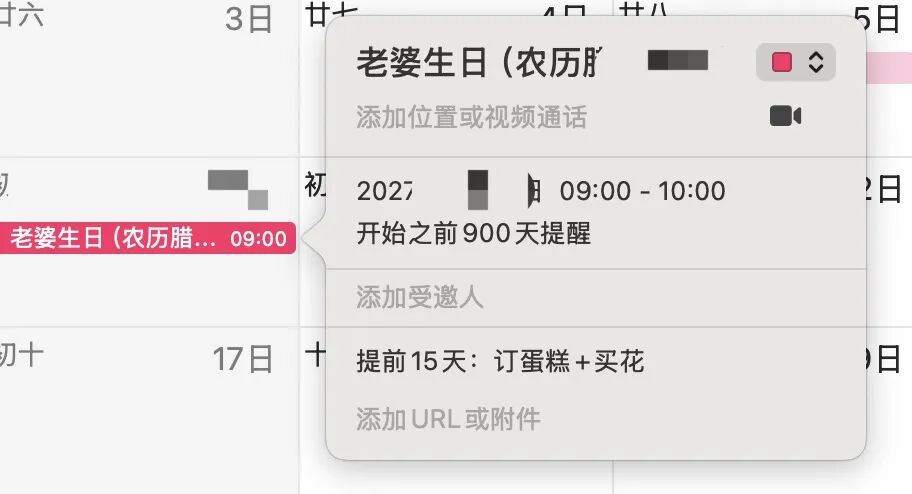 测试任务三:给老婆生日设置提醒