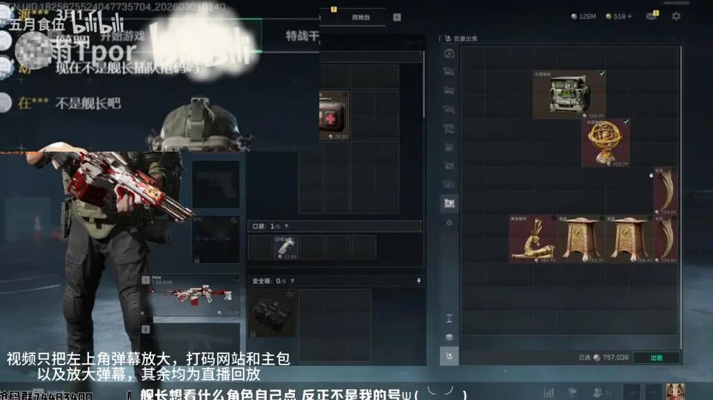 3月1日凌晨,直播间用户“五月食伍”在清雨Tpor直播间扫码上号,但清雨 Tpor 发现其舰长身份刚好过期,当场出言嘲讽挑衅,随即用短短30 秒清空账号全部高价值资产:200 多发绝版子弹、十几组稀有红盒、全套顶级装备,外加玩家耗时一年积攒的珍贵物资,被悉数出售、彻底销毁,不留一丝挽回余地。
