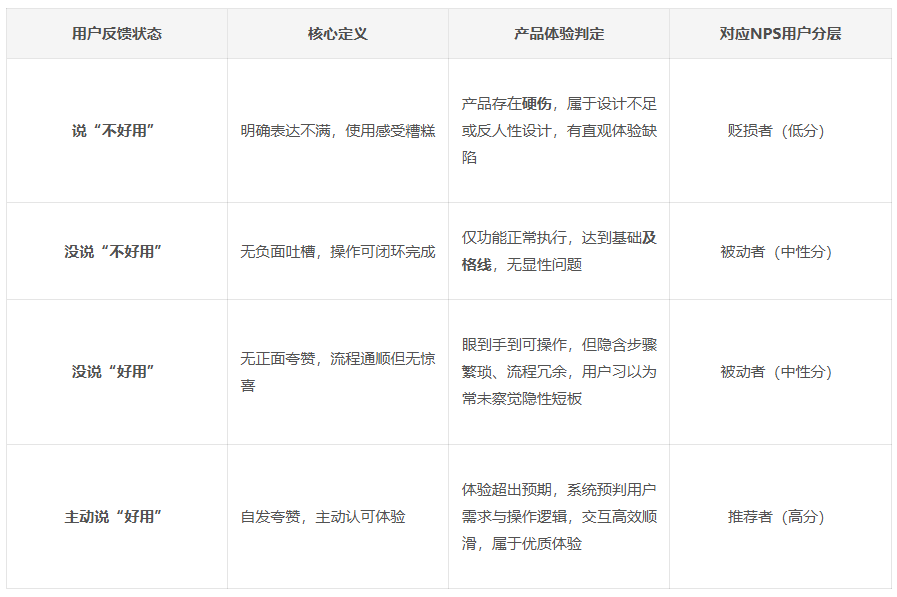 这一点在NPS(净推荐值)调研中尤为明显:中性评分、无负面评价,仅能证明功能“能用”,绝不代表“好用”,更不代表用户愿意主动推荐。真正优质的体验,从来不是功能堆砌,而是对用户操作习惯、使用场景、潜在需求的精准预判。