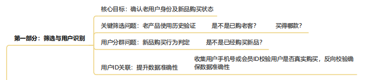 筛选用户,确保更有针对性的得出老客已购和未购用户在认知、行为和决策上的差异点。