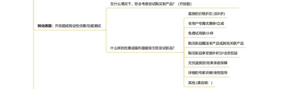 诱因探测题:“哪种情况您会买?”→ 选项含“免费试用”“无效退款”等具体策略钩子