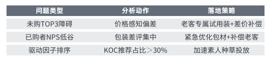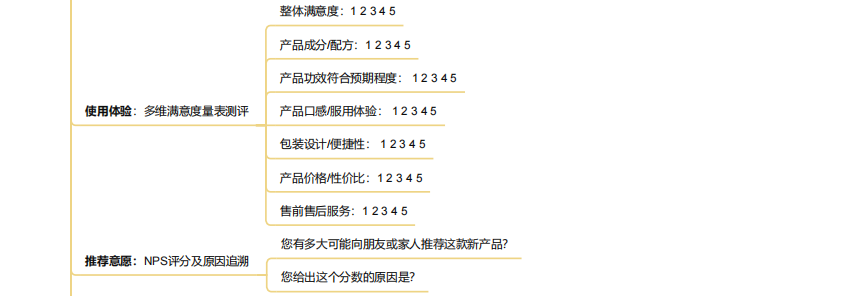 慎用开放题:只留1-2条:“购买前顾虑?什么让您打消它?”以及未来复购预期探寻