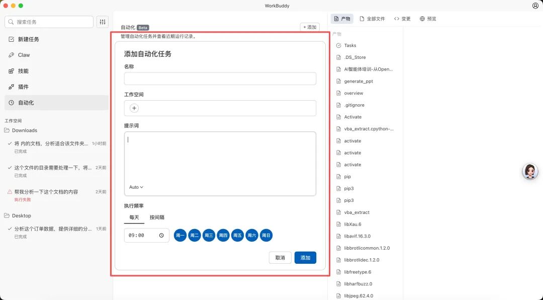 WorkBuddy正式支持后台自动化任务,用户可以设置定时任务,让AI自动抓取工作数据、整理会议纪要、监控竞品信息,并生成结构化的日报、周报。该功能支持多Agent并行处理,能够拆分复杂任务,提升执行效率。这使WorkBuddy从一个被动响应的助手,进化成为7×24小时待命、主动产出价值的“AI员工”。