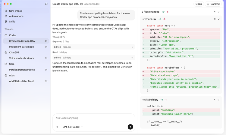 2月2日,Codex桌面App发布(macOS),OpenAI同时宣布向ChatGPT免费和Go用户开放Codex,所有付费用户的速率限制翻倍。