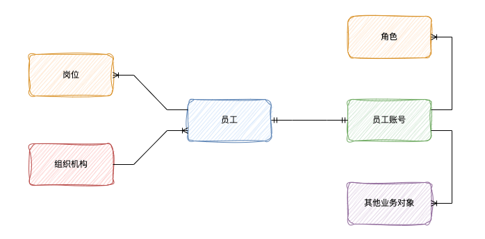 我们先来看看员工账号会和哪些业务对象有关系。