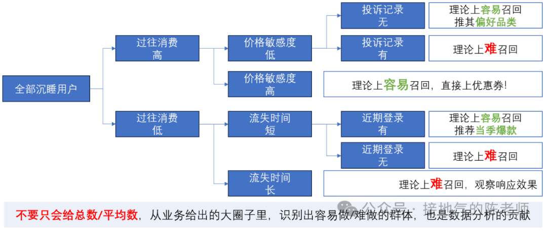 分群后,可能有些群体先天更容易召回,有些已经彻底死掉。这样细致划分,更有利于业务开展工作。