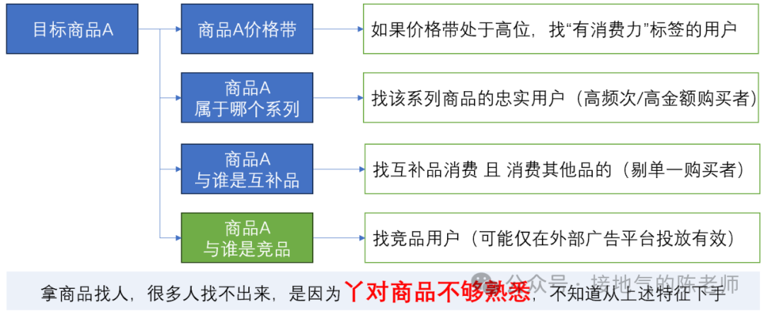 梳理清楚产品本身的特征后,才好捞对应的用户标签。这里有一些固定套路: