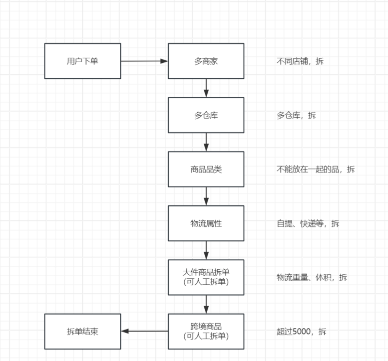 由于某些品类商品的属性和价值不同,都会有一定特殊要求,比如:易碎品、腐蚀性等之类的商品,这样就不能放在一起了,因此需要拆分操作。