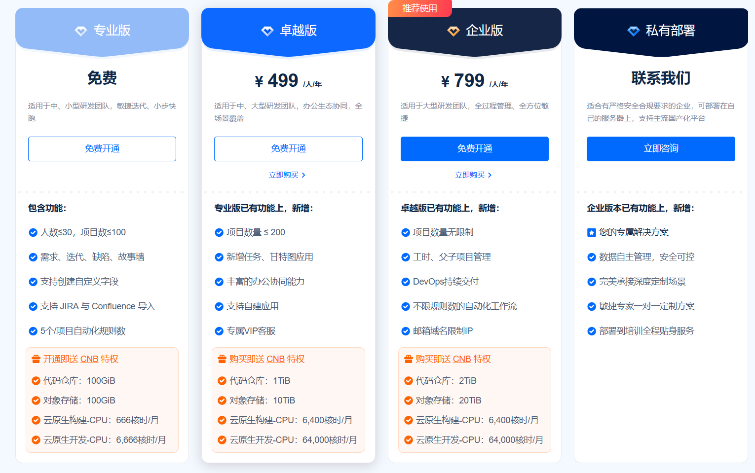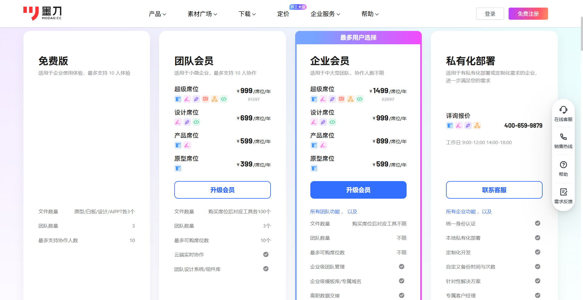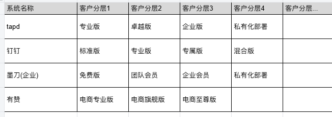 TAPD、钉钉、墨刀等B端产品,通常会区分“基础版”“专业版”“企业版”,其背后正是客户分层的体现。