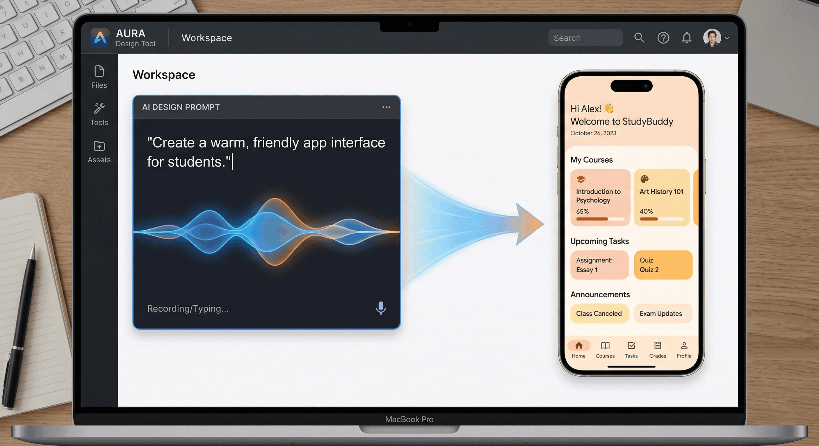 Stitch 2.0的”Vibe Design Partner”理念,核心在于它理解的是意图,而不是指令。你不需要说”帮我做一个16px内边距、2px圆角、带投影的卡片组件”,你只需要说”做一个让人感觉温暖友好的学生应用界面”。AI会把这个模糊的情感描述翻译成具体的视觉语言。