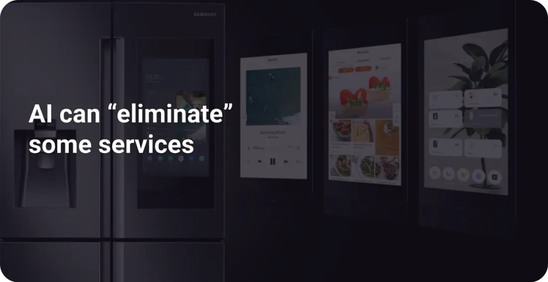 AI 和互联设备生态系统要多久才能让服务对用户来说近乎隐形,从而在某种程度上消除服务本身呢?(例如,如果你有一台连接到智能家居系统的智能冰箱,我们可以设想,AI 最终能分析你的消费习惯,并在你上班时直接安排送货到冰箱(🔗 https://www.theverge.com/2022/7/6/23196979/walmart-inhome-direct-fridge-deliveries-plus-perk)(没错,这已经实现了!),还能为送货员或机器人开门。)