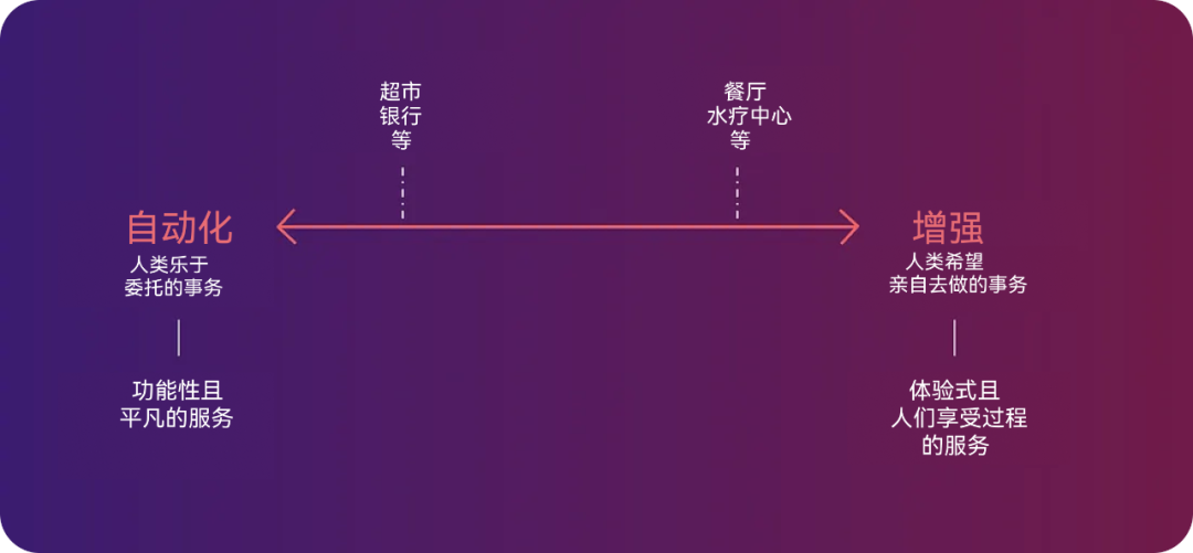 此时,我们又回到了需要弄清楚如何设计复杂的人机协作用户链路,以及哪些任务由人或AI来处理会更好,还有如何在这两者之间建立关系的问题上。这一次,依据的不仅是能力,还有对体验内容的偏好。我们可能想节省在杂货店排队的时间,转而去喜欢的餐厅或水疗中心,享受那里的服务,将其作为一种滋养身心的体验。在这种情况下,一个深入了解用户的 AI 代理会非常有用,它可以通过向服务人员传达用户偏好来提升用户体验,正如约翰·梅达(John Maeda)在《如何与机器对话》(How to Speak Machine)中所说,让服务提供者“预见需求并超越期望”,他将未来增强型用户体验与日本最佳的待客传统相提并论。