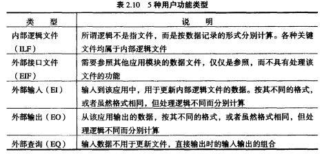 功能点分析的核心在于准确识别和区分五种基本功能类型。下图提供了清晰的对照说明,是进行评估时的关键工具: