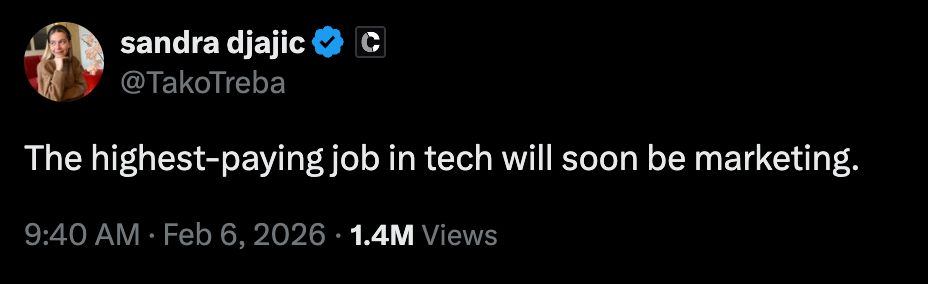 x.com上有个帖子很火,正好说这个趋势。题目是“marketing是科技企业将来最高薪的工作,有几百万人看过。