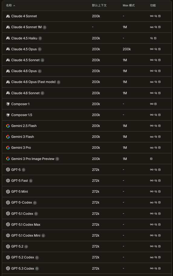 默认情况下,Cursor 使用 200k tokens(约 15,000 行代码)的上下文窗口。Max 模式会将少数模型的上下文窗口扩展到其支持的最大长度。